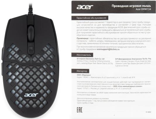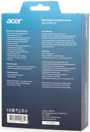 Игровая мышь Acer OMW134 черного цвета станет идеальным выбором для любителей игр, который ценят комфорт и точность при навигации.