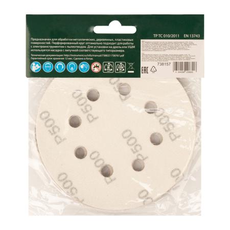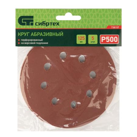 Круг абразивный на ворсовой подложке под "липучку", перфорированный, P 500, 125 мм, 5 шт.// Сибртех