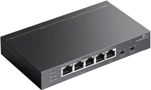 TP-Link TL-SG1005P-PD, Настольный коммутатор с 5 гиг. портами (1 порт с входящим PoE++, 4 порта с исходящим PoE+), бюджет PoE: 9, 21, 47 или 66 Вт (зависит от используемого стандарта входящего PoE)