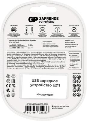 Зарядное устройство GP Rechargeable E211/270AAHCCS-2CR1 AA/AAA NiMH 2700mAh (2шт) блистер