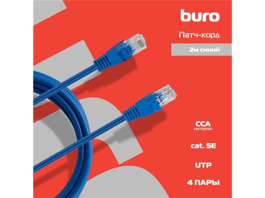 Патч-корд Buro литой (molded), UTP, cat.5E, 2м, 4 пары, 26AWG, алюминий омедненный, 1 шт, синий