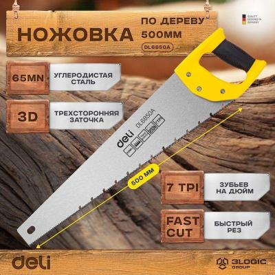 Ножовка по дереву Deli DL6850A 500мм, сталь 65Mn, шлифовка зубцов с 3-х сторон, рукоять из двухкомпонентного противоударного пластика