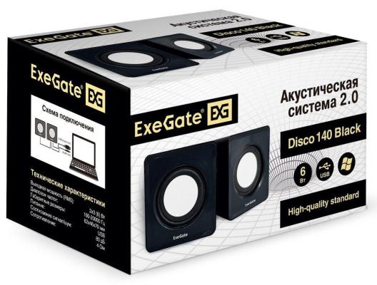 Exegate EX287057RUS Акустическая система 2.0 ExeGate Disco 140 Black (питание USB, 2х3Вт (6Вт RMS), 100-20000Гц, черный)
