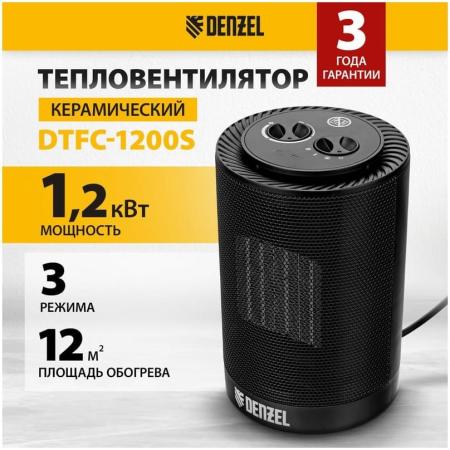Тепловентилятор керамический DTFC-1200S, вращение, 3 реж., вент., нагрев 600/1200 Вт // Denzel