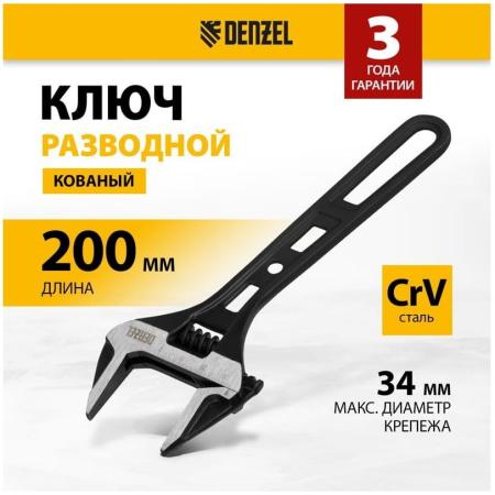 Ключ разводной, 200 мм, CrV, кованый// Denzel