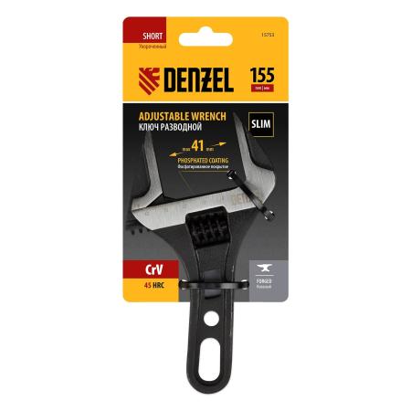 Ключ разводной 155 мм, CrV, кованый, укороченная рукоятка// Denzel