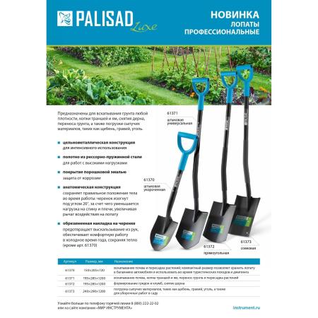 Лопата штыковая профессиональная, 195х285х1200 мм, цельнометаллическая, LUXE// Palisad