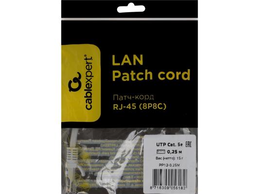 Патч-корд PREMIER PP12-0.25M литой (molded), UTP, cat.5E, 0.25м, 4 пары, 26AWG, алюминий омедненный, серый