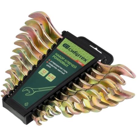 Набор ключей рожковых 6-32 мм, 12 шт, желтый цинк// Сибртех