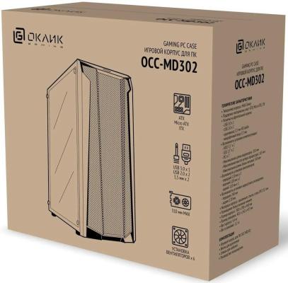Корпус Оклик OCC-MD302 черный без БП ATX 6x120mm 2xUSB2.0 1xUSB3.0 audio bott PSU
