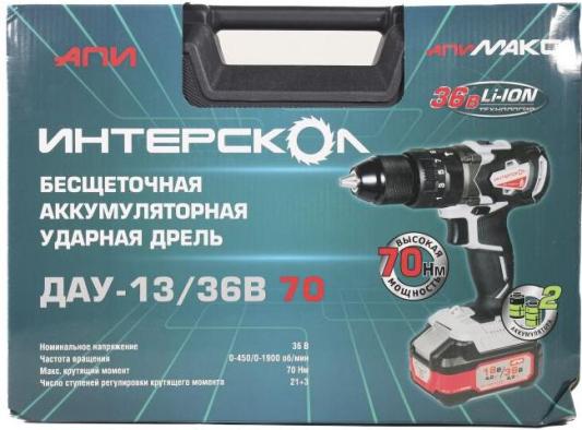 Дрель-шуруповерт Интерскол ДАУ-13/36В 70 аккум. патрон:быстрозажимной (кейс в комплекте) (813.2.2.70)