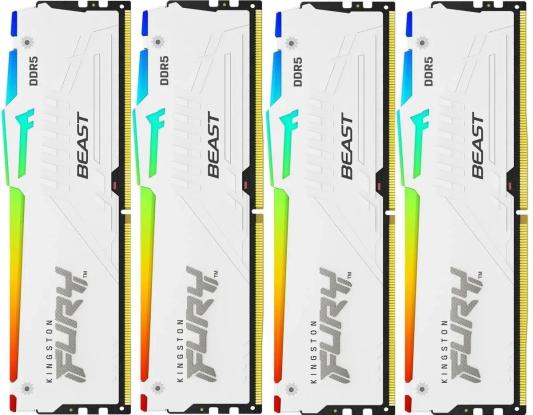 Память оперативная/ Kingston 128GB 5200MT/s DDR5 CL40 DIMM (Kit of 4) FURY Beast White RGB XMP