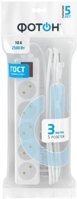 ФОТОН Удлинитель сетевой 10-35S, 3м, 5 розеток, 10А, с выключателем, Белый 21118