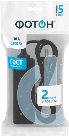 ФОТОН Удлинитель сетевой 10-23, 2м, 3 розетки, 10А, Черный 22718