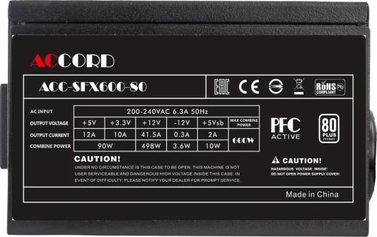 Блок питания Accord SFX 600W ACC-SFX600-80 24pin APFC 80mm fan 3xSATA RTL