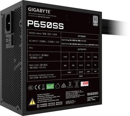 Блок питания Gigabyte ATX 650W GP-P650SS 80+ silver (20+4pin) APFC 120mm fan 5xSATA RTL