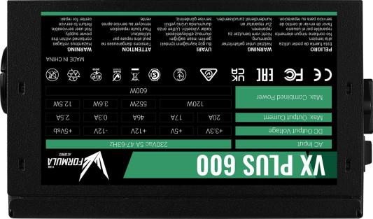 Блок питания Formula ATX 600W AC VX PLUS (20+4pin) 120mm fan 3xSATA RTL