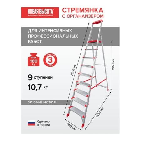 Новая Высота Стремянка профессиональная NV3118, 1x9 ступеней 130 мм, органайзер 3118109