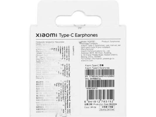Наушники Xiaomi Type-C Earphones White M2413E1 (BHR8931GL)