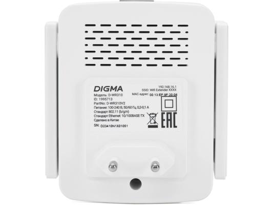 Повторитель беспроводного сигнала Digma D-WR310, белый [d-wr310v2]