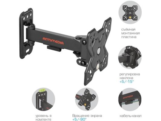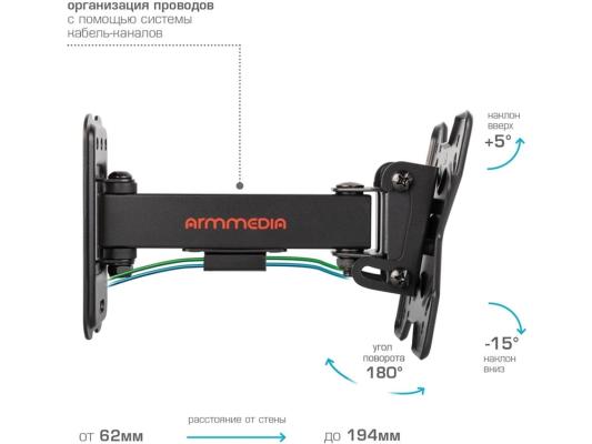 Кронштейн для ТВ ARM MEDIA MARS-5 black (max VESA 100x100 мм., настенный, Наклонно-поворотный, max 25 кг) (90715)