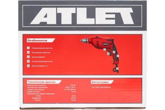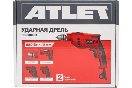 Прочие особенности и свойстваЭлектрическая ударная дрель ATLET PDI600LD1 используется для сверления отверстий в дереве и металле, а также для ввинчивания крепежных элементов. Инструмент оснащен двигателем мощностью 550 Вт. Блокировка кнопки пуска обеспечивает удобство при длительной работе. Прорезиненная рукоятка обеспечивает надежный захват во время работы.