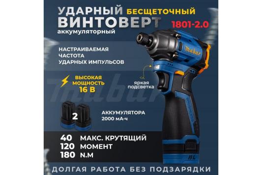 Прочие особенности и свойстваМощный аккумуляторный винтоверт с патроном под биты и бесщеточным двигателем MABAR 1801-2.0 — это удобный и компактный инструмент, который станет незаменимым помощником в повседневных задачах.