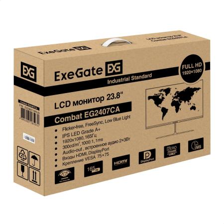 Монитор игровой с аудио 23.8" 165 Гц ExeGate Combat EG2407CA (IPS LED Grade A+, FHD, 1920x1080@165Гц, 16:9, 300cd/m2, 1000:1, 178°/178°, 1ms, Speakers, HDMI, DisplayPort, audio-out, USB, Flicker-free, FreeSync, Low Blue Light, кабель HDMI 1.5м, VESA 75x75, регулировка наклона (tilt), черный)