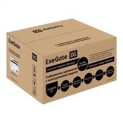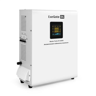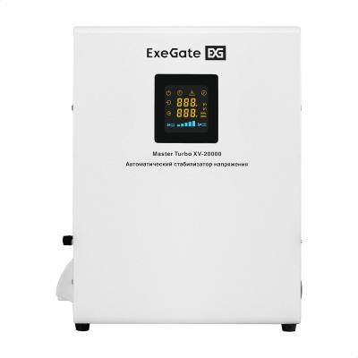 Стабилизатор напряжения настенный ExeGate Master Turbo XV-20000 (20000ВА, вход 80-265В, цветной дисплей, выход 220В±8%, КПД 98%, 5 уровней защиты, задержка, усиленный метал.корпус, 2*Schuko+клем.колодка, RTL)