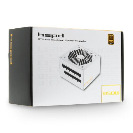 Блок питания/ Power Supply HSPD, 850W 80+ Gold (ATX, 3.1, PCIe 5.1, Full modular, 1x24(20+4)pin mesh 550mm, 2xCPU 8(4+4)pin 700mm, 2xPCIe*2 8(6+2)pin 600+150mm, 1x12VHPWR PCIe 5.1 12+4pin 600W 600mm, 3xSATA*3 450+150+150mm, 1xMOLEX4pin*3 450+150+150mm , Active, 120x120mm, 150x140x86mm, APFC, OVP, UVP, SCP, OCP, OTP, OPP, NLO, SIP, white)