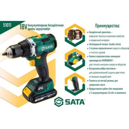 Аккумуляторная бесщёточная дрель -шуруповёрт Sata SC51011