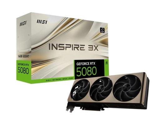Видеокарта MSI PCI-E 5.0 RTX 5080 16G INSPIRE 3X NVIDIA GeForce RTX 5080 16Gb 256bit GDDR7 2617/30000 HDMIx1 DPx3 HDCP Ret