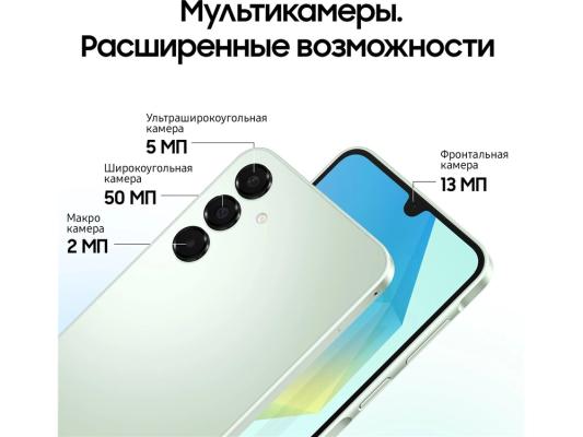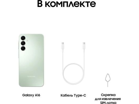 Смартфон Samsung SM-A165F Galaxy A16 128Gb 4Gb мятный моноблок 3G 4G 2Sim 6.7" 1080x2340 Android 14 50Mpix 802.11 a/b/g/n/ac NFC GPS GSM900/1800 GSM1900 microSD max1024Gb