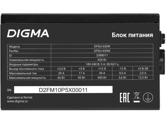 Блок питания Digma ATX 650W DPSU-650W (20+4pin) 120mm fan 4xSATA RTL