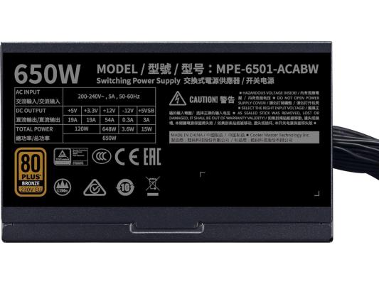 Блок питания Cooler Master ATX 650W MWE Bronze V3 Gen.5 80+ bronze 24pin APFC 120mm fan 6xSATA RTL