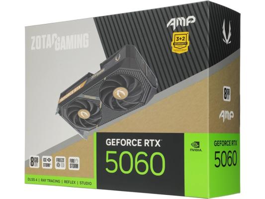 Видеокарта Zotac PCI-E 5.0 RTX 5060 AMP NVIDIA GeForce RTX 5060 8Gb 128bit GDDR7 2550/28000 HDMIx1 DPx3 HDCP Ret