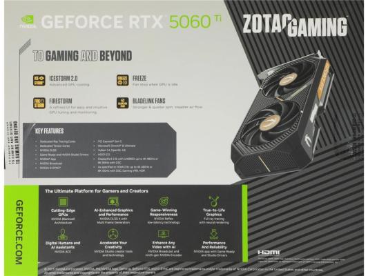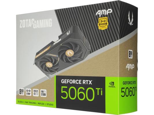 Видеокарта Zotac PCI-E 5.0 RTX 5060TI 8GB AMP NVIDIA GeForce RTX 5060TI 8Gb 128bit GDDR7 2632/28000 HDMIx1 DPx3 HDCP Ret