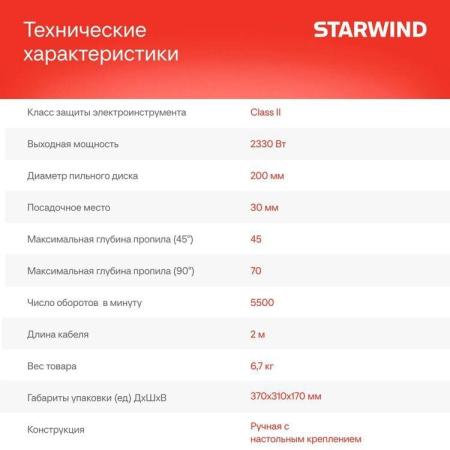 Циркулярная пила (дисковая) Starwind CS200-2330C 2330Вт (ручная) D диска.:2000мм