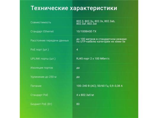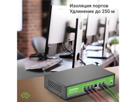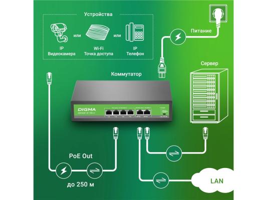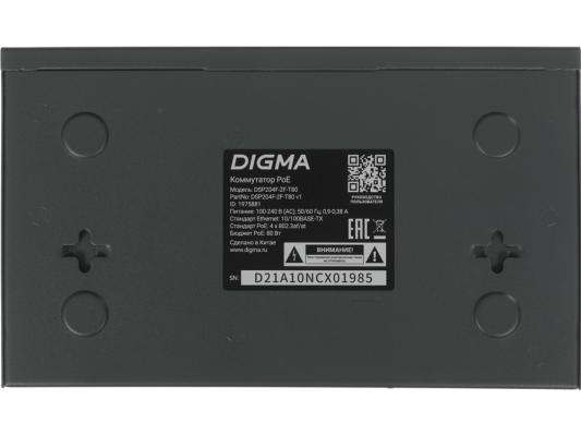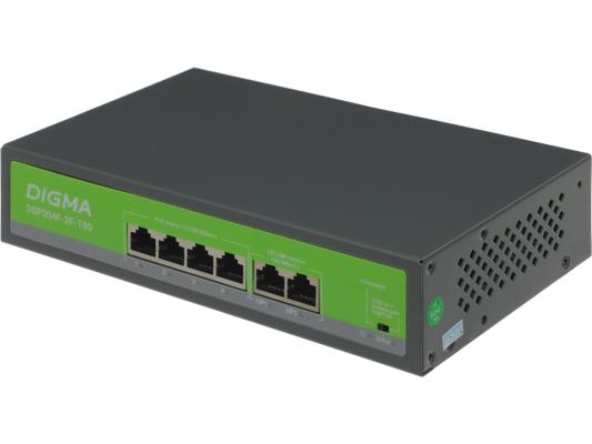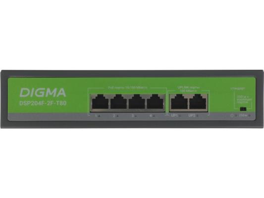 Коммутатор Digma DSP204F-2F-T80 DSP204F-2F-T80 V1 (L2) 6x100Мбит/с 4PoE 4PoE+ 80W неуправляемый