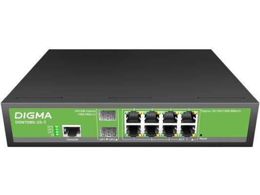 Коммутатор Digma DSW708G-2S-T (L2+) 8x1Гбит/с 2SFP управляемый