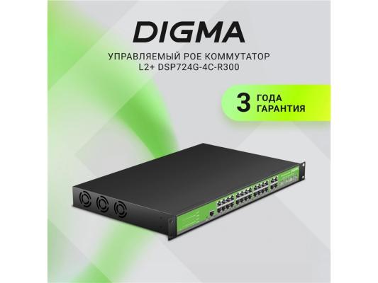 Коммутатор Digma DSP724G-4C-R300 (L2+) 24x1Гбит/с 4xКомбо(1000BASE-T/SFP) 24PoE 24PoE+ 300W управляемый