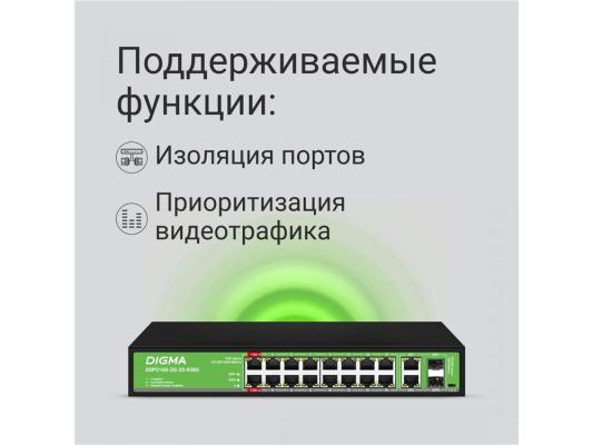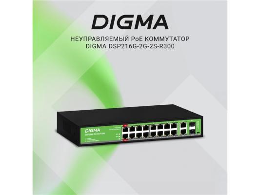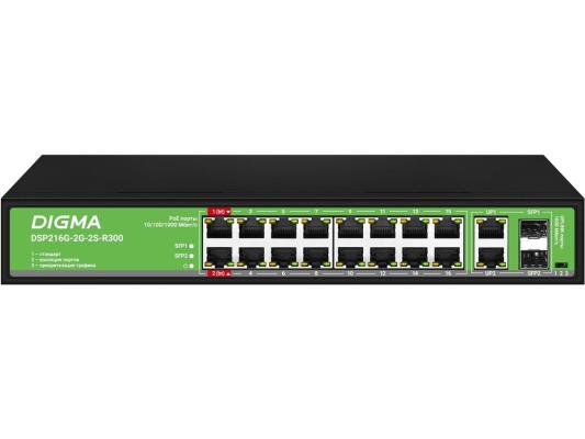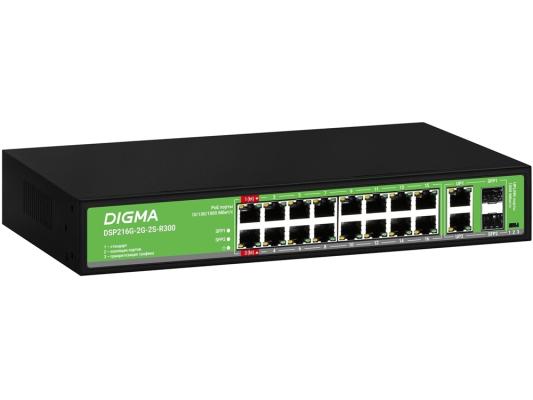 Коммутатор Digma DSP216G-2G-2S-R300 (L2) 18x1Гбит/с 2SFP 16PoE 16PoE+ 2PoE++ 300W неуправляемый