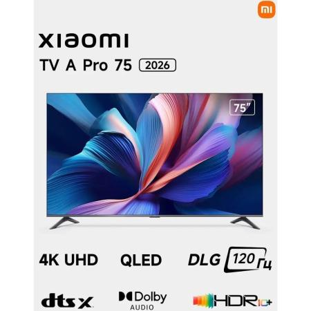 75" Телевизор Xiaomi TV A Pro 75 2026 QLED, 4K Ultra HD, черный, СМАРТ ТВ, Android TV