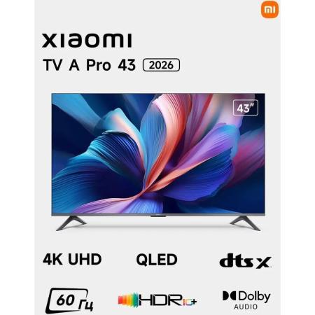 43" Телевизор Xiaomi TV A Pro 43 2026 QLED, 4K Ultra HD, черный, СМАРТ ТВ, Android TV