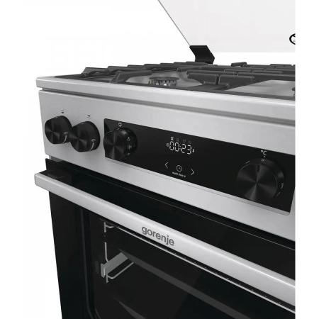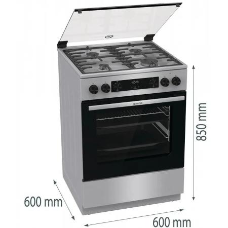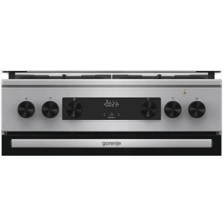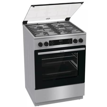 Газовая плита Gorenje GKS6C72XF, электрическая духовка, стеклянная крышка, чугун, нержавеющая сталь