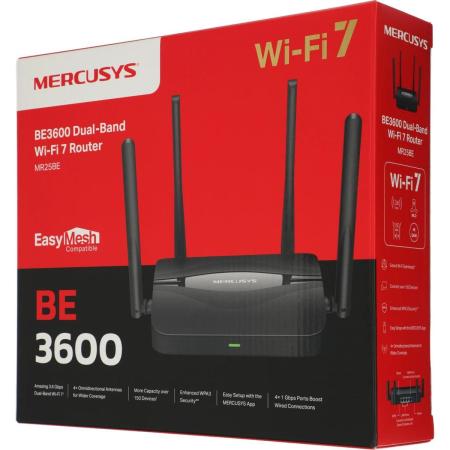 Wi-Fi роутер MERCUSYS MR25BE, Wi-Fi 7, BE3600, 2.4/5ГГц, 3 LAN, черный