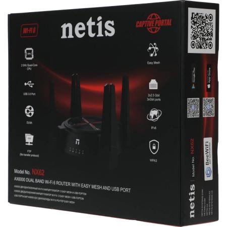 Wi-Fi роутер Netis NX62, Wi-Fi 6, AX6000, 2.4/5ГГц, 4 LAN, черный
