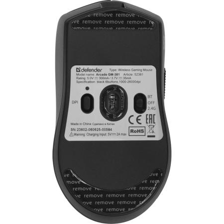 Мышь беспроводная Defender Arcade, игровая, Bluetooth/Радио, оптическая, USB, USB-C, 26000dpi, черный [52381]