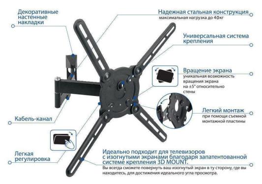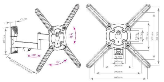 Кронштейн Kromax ATLANTIS-15 Grey (Наклонно-поворотный для LED TV 22"-65", 4 ст. свободы, VESA 75/100/200X100/200X200/300x300/400x200/400x400)40кг