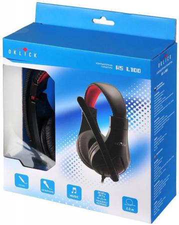 Гарнитура Oklick HS-L100 черный/красный 2м мониторы